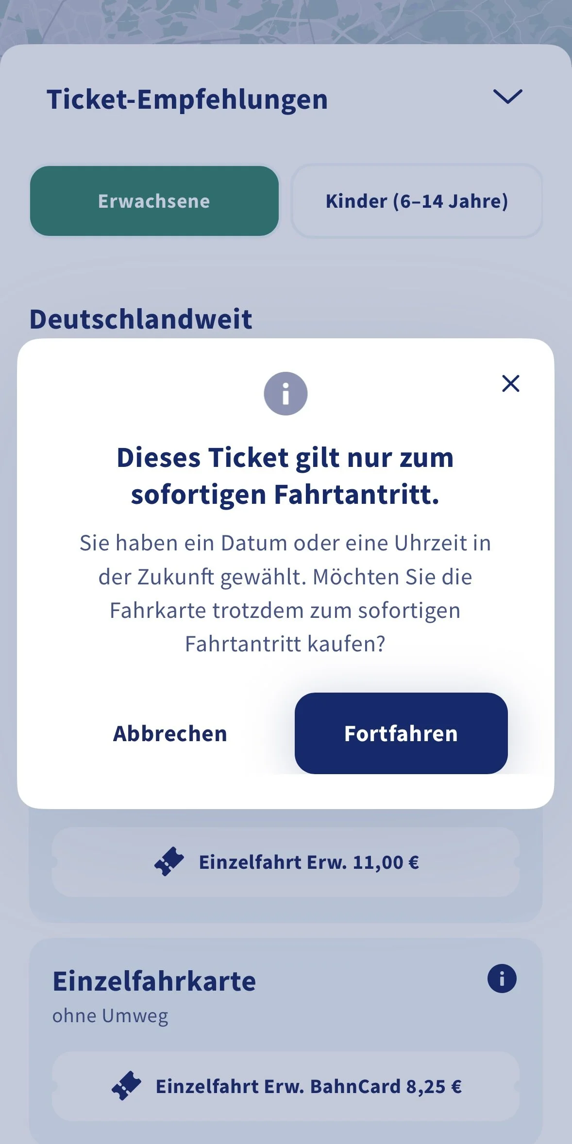 Einzelfahrkarten können nicht im Voraus gebucht werden. Lediglich die Buchung zum direkten Fahrtantritt ist möglich.